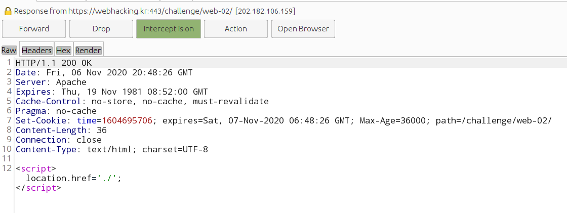 Looking at the response, a cookie named time is being set which reflects the date and time value show in the above HTML comment.