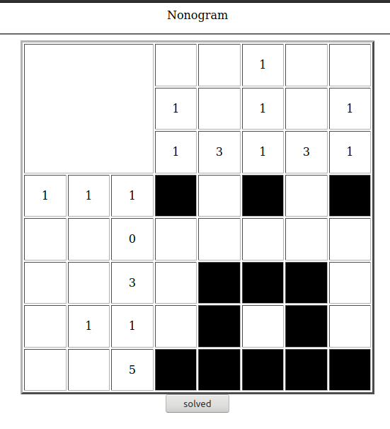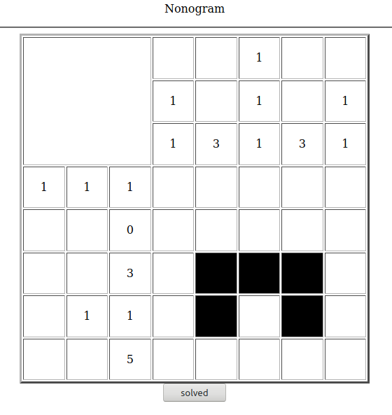 Level 3 presents a Nonogram/Sudoku puzzle. This can be read as follows: Horizontally, the last line has 5 black colors, second to last 2 colors etc etc. An example of this can be seen below: