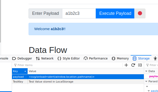 Any user input inserted into the payloadbox is stored within the browser’s local storage.