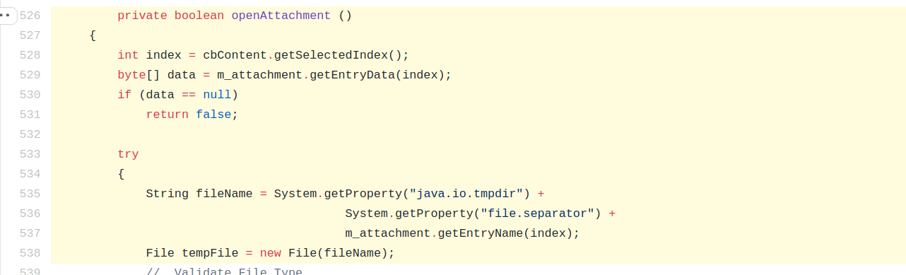 A command injection vulnerability exists when attachments are opened with a malicious filename under the windows environment.