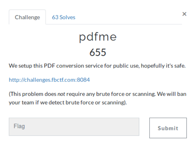 This challenge was part of Facebook CTF . Looking at the challenge tab, the following information is provided: