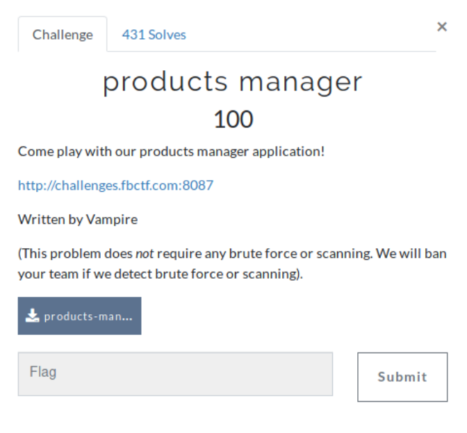 This challenge was part of Facebook CTF . Looking at the challenge tab, the following information is provided: