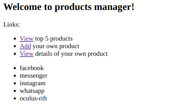 Going to the provided URL, this leads to the following web application where you can add and view your own products.