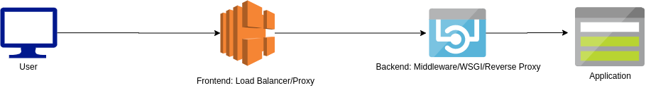 A modern web server stack will often contain multiple web servers along with load balancers and WSGI servers. A basic diagram to visualize this can be seen as:
